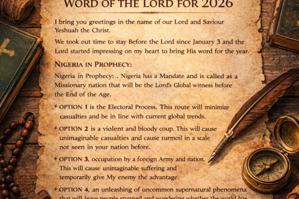 Our nation Nigeria has a Mandate and is called as a Missionary nation that will be the Lord’s Global witness before the End of the Age. Nigeria is called to bring in a harvest of Sheep Nations at this dawn of the Kingdom Age. For Nigeria to fulfill this commission...