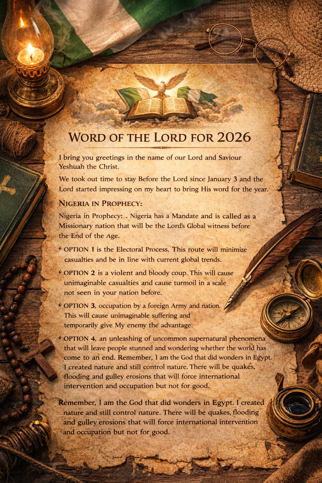 In 2018, I brought the word of the Lord that God has four ways to compel Nigeria to conform to heaven’s demand...